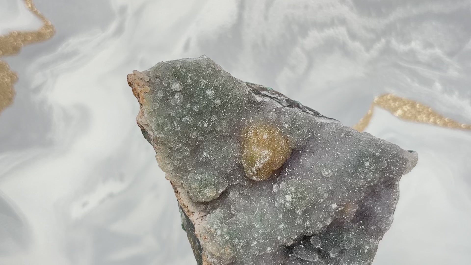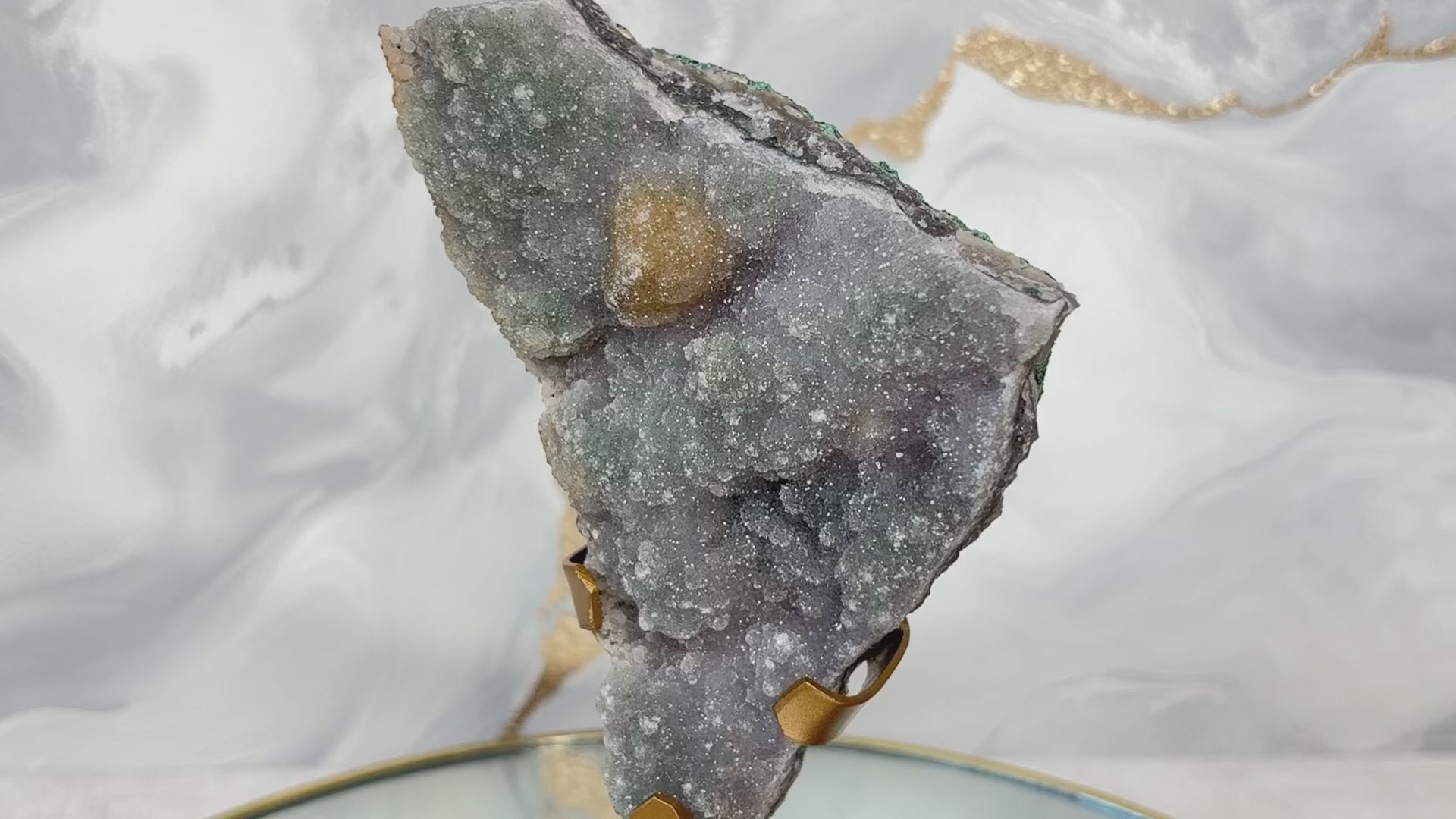 ● Grüner Amethyst mit goldenem Einschluss