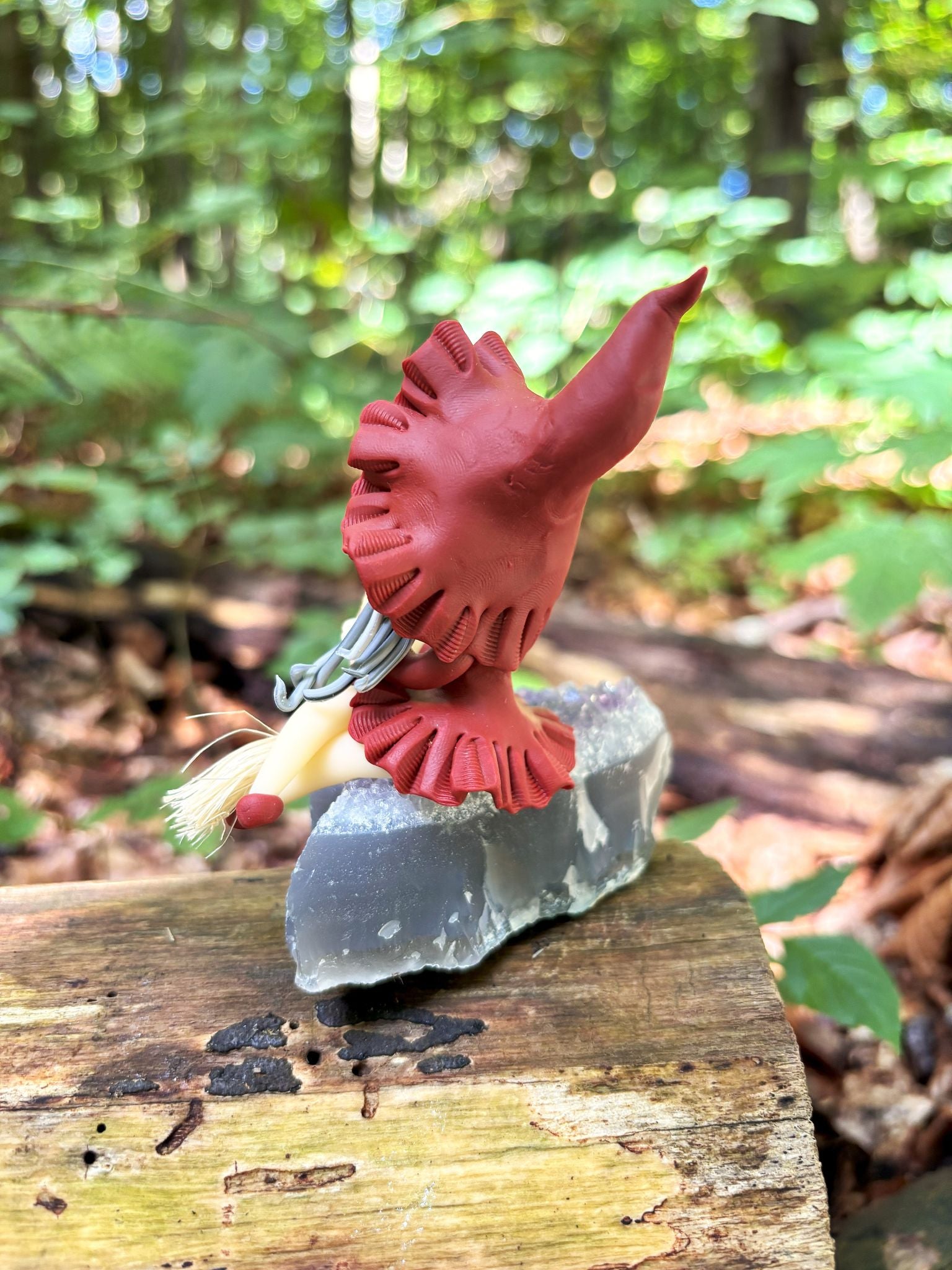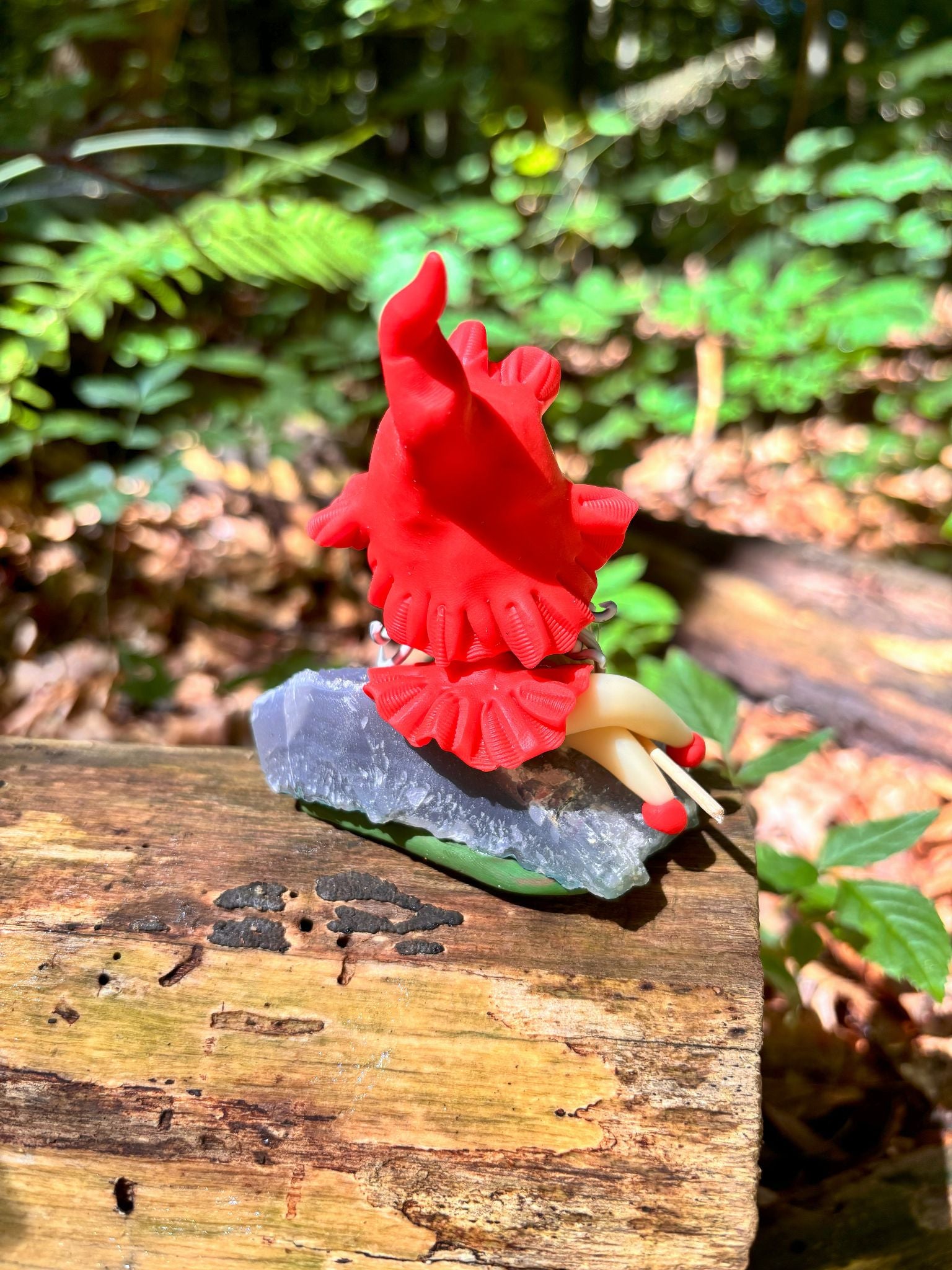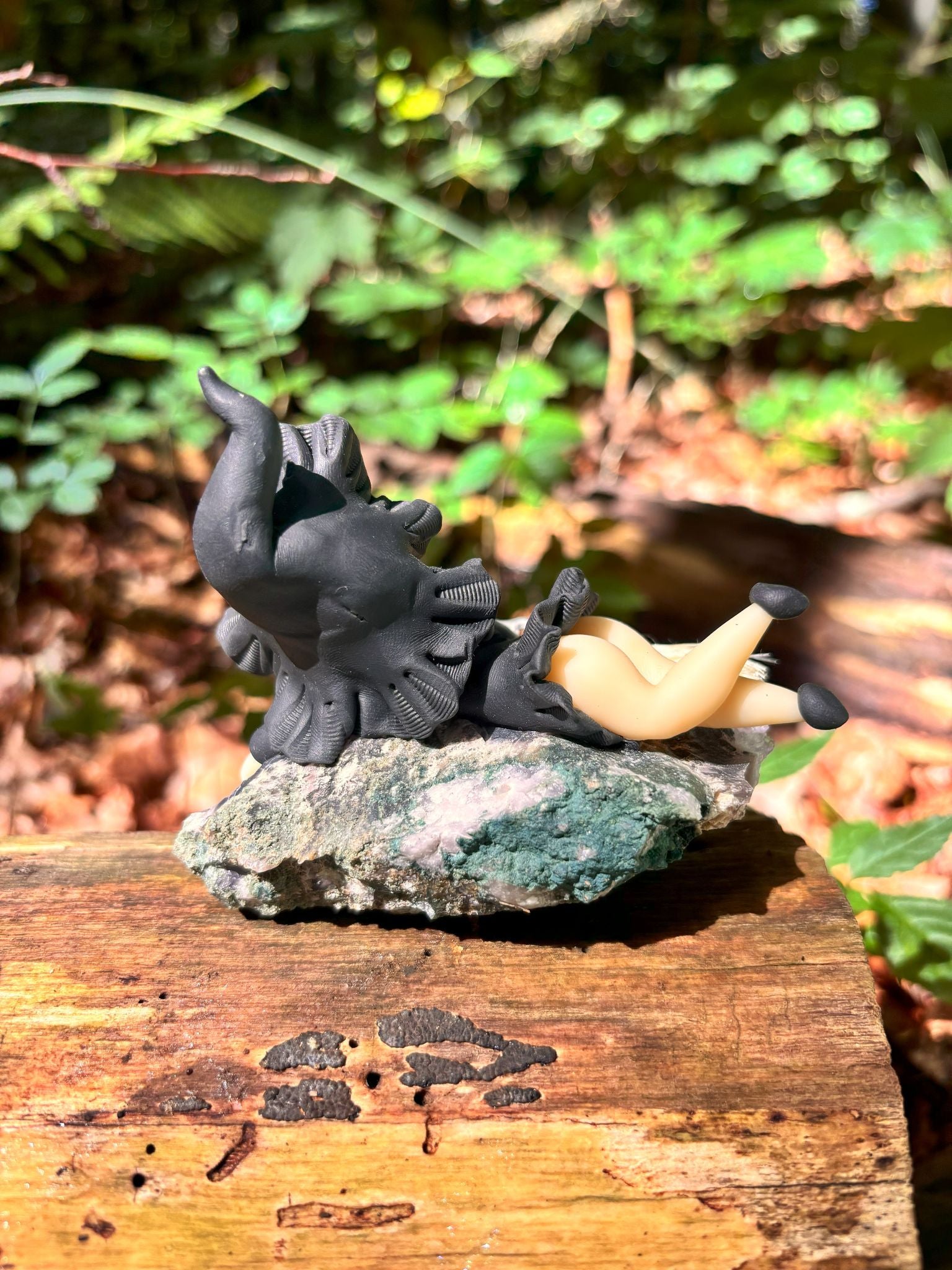 ● Süße Hexenfiguren, die auf einer Basis aus rohem Amethyst platziert wurden.